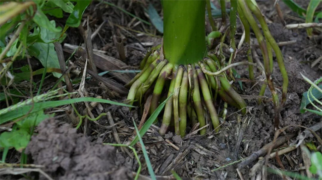 株型清秀,生長(zhǎng)穩(wěn)健:株型清秀,葉片上沖且葉夾角小,光合作用高效;莖稈柔韌且基部粗壯,氣生根發(fā)達(dá),抗倒性好。