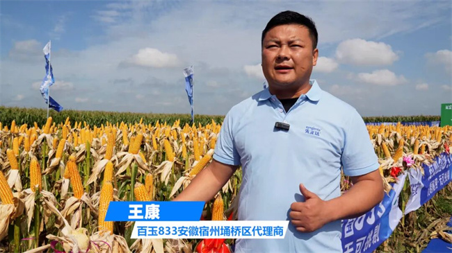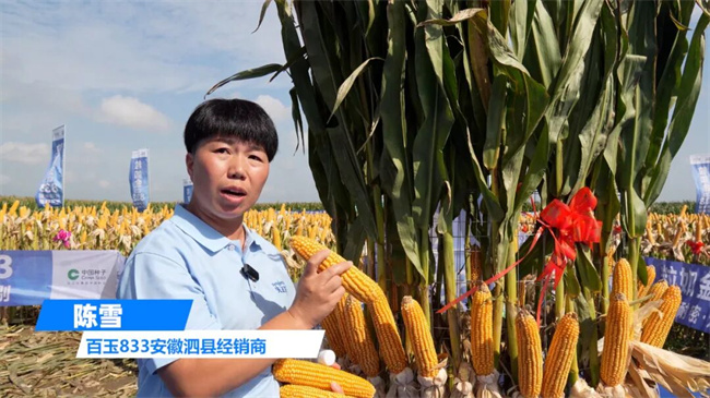 泗縣經(jīng)銷商陳雪經(jīng)理表示,百玉833耐密,成穗率高,出籽率高,增產(chǎn)潛力大。株型緊湊,株高、穗位不高,抗倒性好。