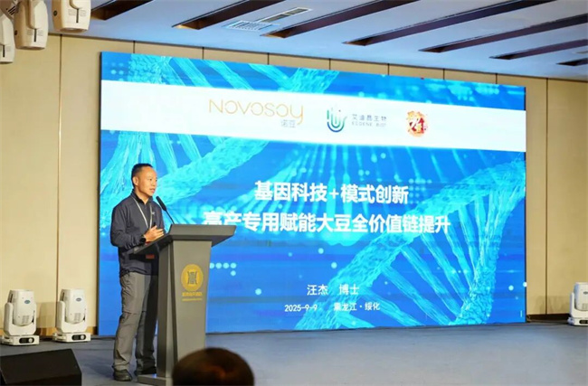 會(huì)上,艾迪晶生物首席運(yùn)營官汪杰博士受邀發(fā)表題為“高產(chǎn)專用賦能大豆全價(jià)值鏈提升”的大會(huì)主旨報(bào)告。作為基因編輯生物育種應(yīng)用領(lǐng)域的深度參與者,艾迪晶重點(diǎn)展示了AI+基因編輯等前沿技術(shù)在精準(zhǔn)育種領(lǐng)域的突破性成果,引發(fā)與會(huì)專家及企業(yè)高度關(guān)注,現(xiàn)場達(dá)成多項(xiàng)合作意向。