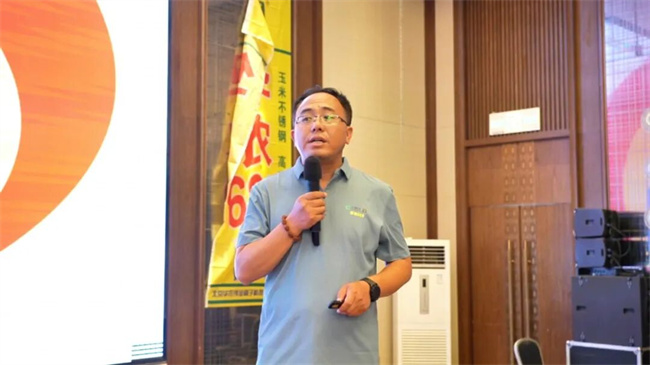 泗縣經(jīng)銷商王允結(jié)合華農(nóng)689的品種優(yōu)勢,系統(tǒng)講解了高產(chǎn)栽培技術,包括種植密度、施肥方案、收獲標準等關鍵環(huán)節(jié)。他呼吁與會伙伴攜手合作,共同推動華農(nóng)689早日實現(xiàn)千萬畝級奮斗目標,共享品種升級紅利。