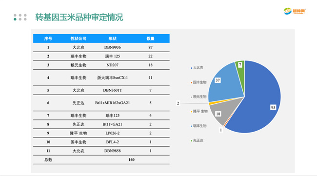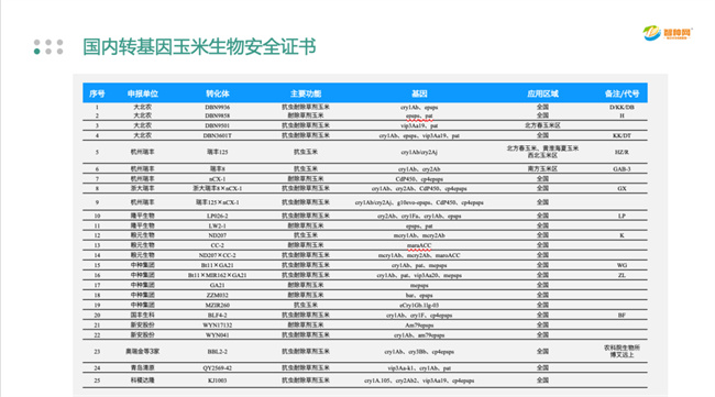 智種資訊在線:近日,中華人民共和國(guó)農(nóng)業(yè)農(nóng)村部發(fā)布了第947號(hào)公告,批準(zhǔn)了華皖763D等96個(gè)轉(zhuǎn)基因玉米品種以及交育1號(hào)GS等2個(gè)轉(zhuǎn)基因大豆品種的審定。這些品種的審批,標(biāo)志著我國(guó)轉(zhuǎn)基因玉米品種的審定工作進(jìn)一步深入,且加快了市場(chǎng)化步伐。隨著轉(zhuǎn)基因品種的日益增多,預(yù)計(jì)2025年后,160個(gè)轉(zhuǎn)基因玉米品種將進(jìn)入市場(chǎng),推動(dòng)我國(guó)玉米產(chǎn)業(yè)的革新。