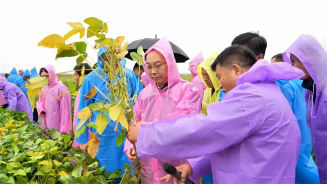 會前,參會嘉賓冒雨走進(jìn)田間,實地觀摩了集中展示的大豆新品種,見證了科研成果在生產(chǎn)實踐中的落地應(yīng)用。