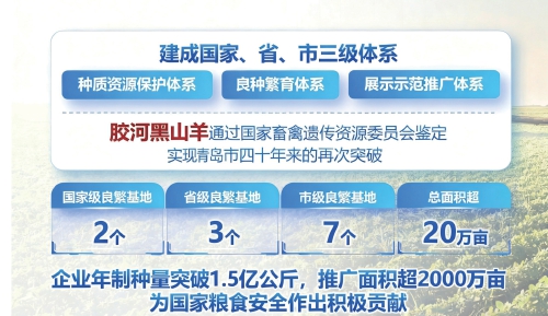 青島地處山東半島南部,氣候溫潤,四季分明,孕育了豐富的畜禽遺傳資源。自青島市全面啟動實施畜禽良種保護政策以來,共建設(shè)國家級畜禽保種場3個、省級畜禽遺傳資源保種場5個。在剛剛結(jié)束的第三次全國畜禽遺傳資源普查行動中,又新發(fā)現(xiàn)遺傳資源膠河黑山羊。至此,青島市納入畜禽遺傳資源保護的品種數(shù)量達(dá)到了9個。為此,青島市專門出臺《畜禽遺傳資源保種場管理辦法》,建立了國家、省、市三級遺傳資源保護體系,聚焦保、育、測、繁、推等關(guān)鍵環(huán)節(jié)持續(xù)發(fā)力,打出一套畜禽種業(yè)振興“組合拳”。
