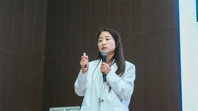 在隨后的室內(nèi)會議上,彭創(chuàng)農(nóng)業(yè)總經(jīng)理楊雪利結(jié)合豐富的行業(yè)經(jīng)驗與敏銳的市場洞察,詳細解析了金華創(chuàng)826的核心優(yōu)勢,涵蓋抗倒、抗病、高產(chǎn)穩(wěn)產(chǎn)、優(yōu)質(zhì)與抗逆等多個維度。她強調(diào),金華創(chuàng)826不僅是一款高水平的國審品種,更是未來市場競爭中的“硬核產(chǎn)品”。