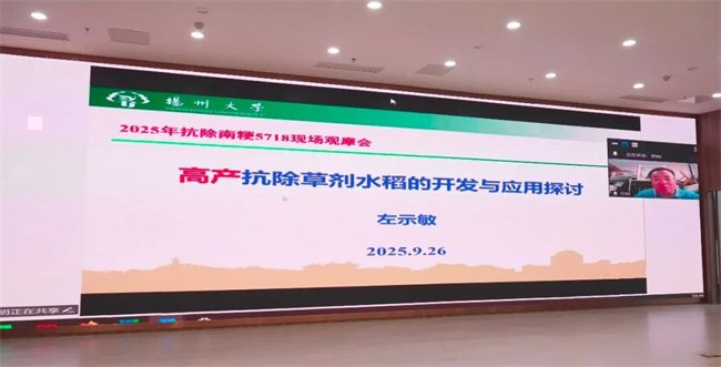 在室內(nèi)研討環(huán)節(jié),專家學(xué)者、企業(yè)代表圍繞南粳5718的改良方向、市場推廣及行業(yè)發(fā)展展開深入交流。揚州大學(xué)左示敏教授分享了基于南粳5718開展抗除草劑與香味基因改良的研究進(jìn)展,并提出合理用藥與推廣指導(dǎo)的建議。