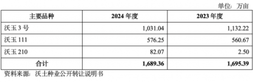 根據(jù)獲取的財務數(shù)據(jù),2023年和2024年,沃土種業(yè)分別實現(xiàn)營業(yè)收入5.57億元和5.52億元,凈利潤分別為1.4億元和1.2億元。主推品種包括“沃玉3號”“沃玉111”“沃玉210”等,2023年和2024年上述品種推廣面積合計均超過1,500萬畝: