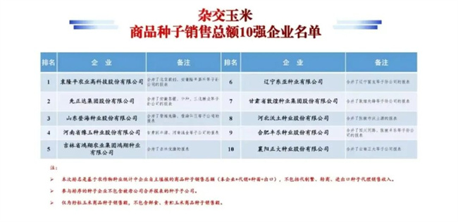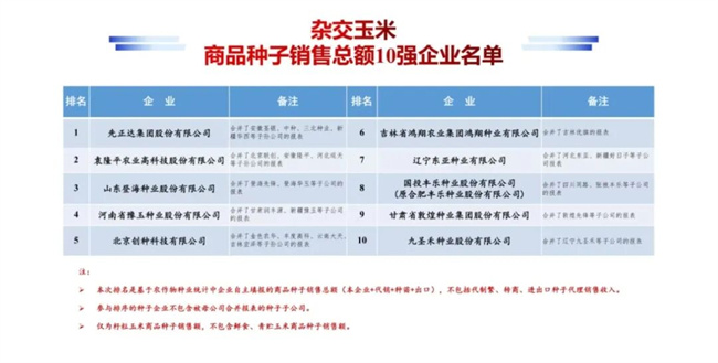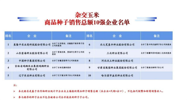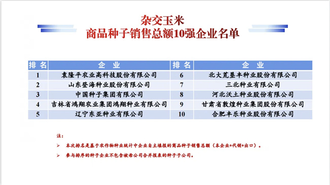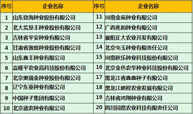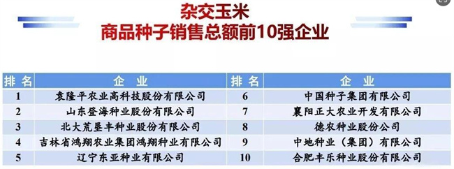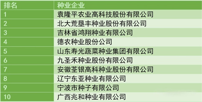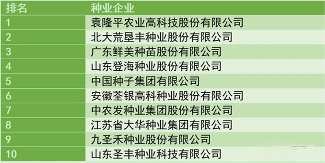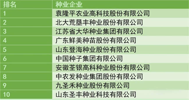 2019年種子銷售利潤(rùn)前十名企業(yè)