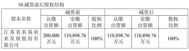 據(jù)公告,為優(yōu)化資本結(jié)構(gòu),降低出資負(fù)擔(dān),蘇墾農(nóng)發(fā)擬減少對(duì)省種業(yè)集團(tuán)出資89,101.24萬元;減資完成后,省種業(yè)集團(tuán)注冊(cè)資本將由200,000萬元減少至110,898.76萬元,蘇墾農(nóng)發(fā)仍直接持有省種業(yè)集團(tuán)100%股權(quán)。