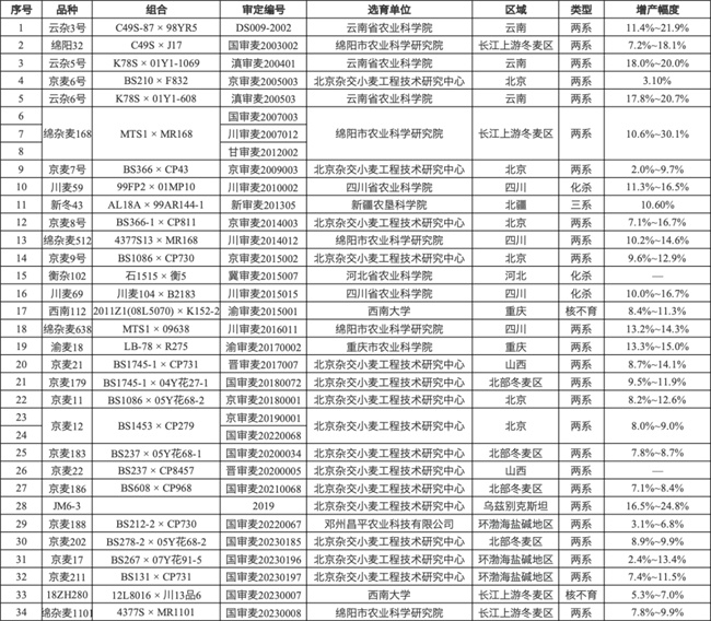 目前,我國(guó)已建立三系法、兩系法、化殺法與核不育法四種技術(shù)路線,累計(jì)審定品種34個(gè)。其中“綿雜麥168”表現(xiàn)尤為突出,單個(gè)品種年種植面積達(dá)45萬(wàn)畝,累計(jì)推廣面積250萬(wàn)畝,增產(chǎn)幅度介于2.0%–30.1%之間,已示范推廣至國(guó)內(nèi)外多個(gè)生態(tài)區(qū)。經(jīng)過(guò)數(shù)代努力,我國(guó)雜交小麥研究已躋身世界領(lǐng)先行列。