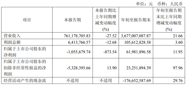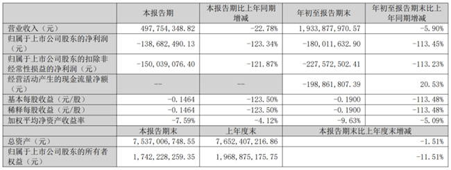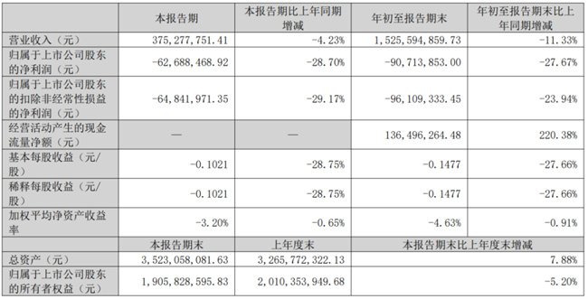 在第三季度單季表現(xiàn)方面,營業(yè)收入3.75億元,同比下降4.23%,歸母凈利潤-6268.85萬元,同比下降28.70%。