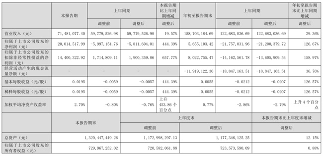 第三季度單季營收7148.11萬元,同比增長19.57%,凈利潤2001.45萬元,同比大漲444.49%。