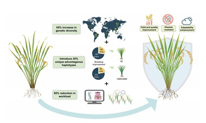 20世紀(jì)60年代以來(lái),雜交稻的培育為全球糧食安全作出重要貢獻(xiàn)。然而長(zhǎng)期依賴(lài)少數(shù)骨干親本,導(dǎo)致現(xiàn)代雜交稻親本遺傳基礎(chǔ)狹窄。同時(shí),盡管現(xiàn)有水稻種質(zhì)資源豐富,但由于缺乏高效鑒定手段,使得種質(zhì)資源中的優(yōu)異等位基因在雜交稻改良中難以利用。