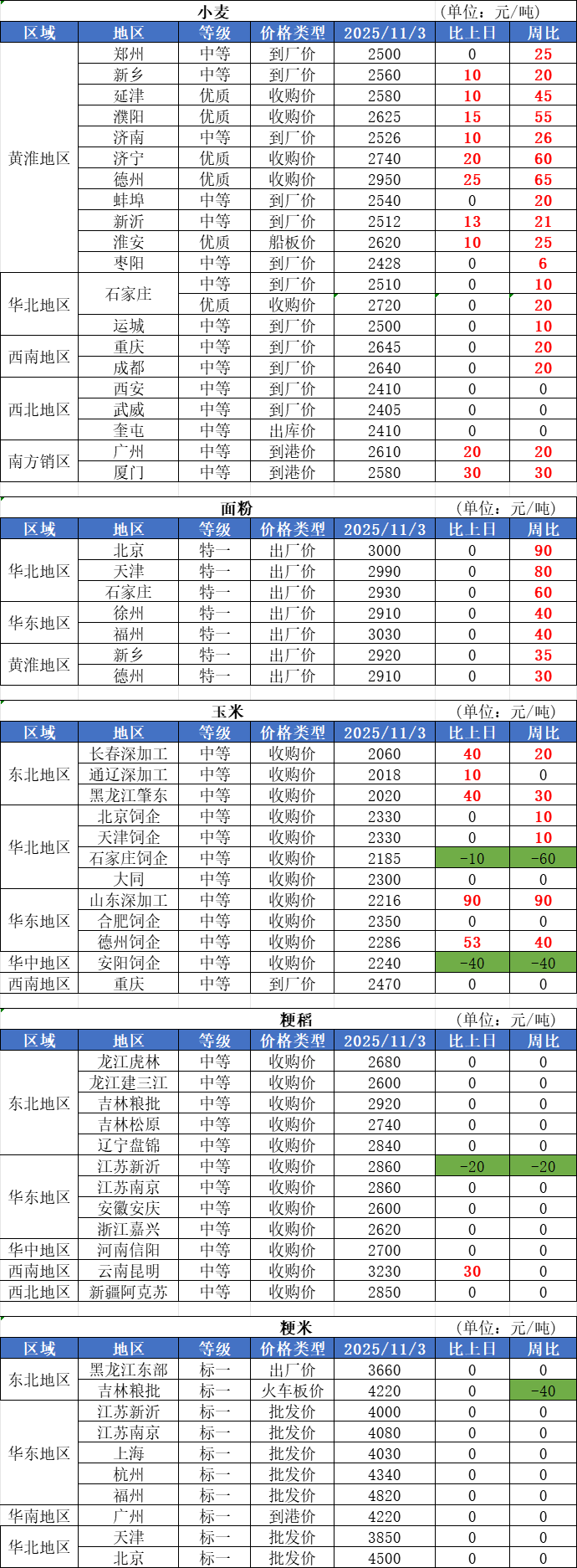 1、11月3日,全國(guó)小麥加工企業(yè)收購(gòu)價(jià)格窄幅震蕩,持續(xù)上漲的勢(shì)頭放緩,河北局部面粉廠率先迎來(lái)下跌,跌幅在3-5厘。另外,農(nóng)業(yè)農(nóng)村部最新農(nóng)情調(diào)度顯示,秋冬種主要作物冬小麥播種已過(guò)三成,黃淮海主產(chǎn)區(qū)播種進(jìn)度加快。