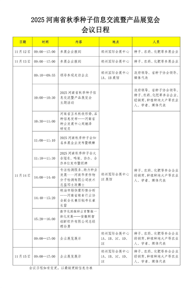 日程安排發(fā)布!2025河南秋季種子會將于11月14日—15日在鄭州國際會展中心舉辦,會期2天!