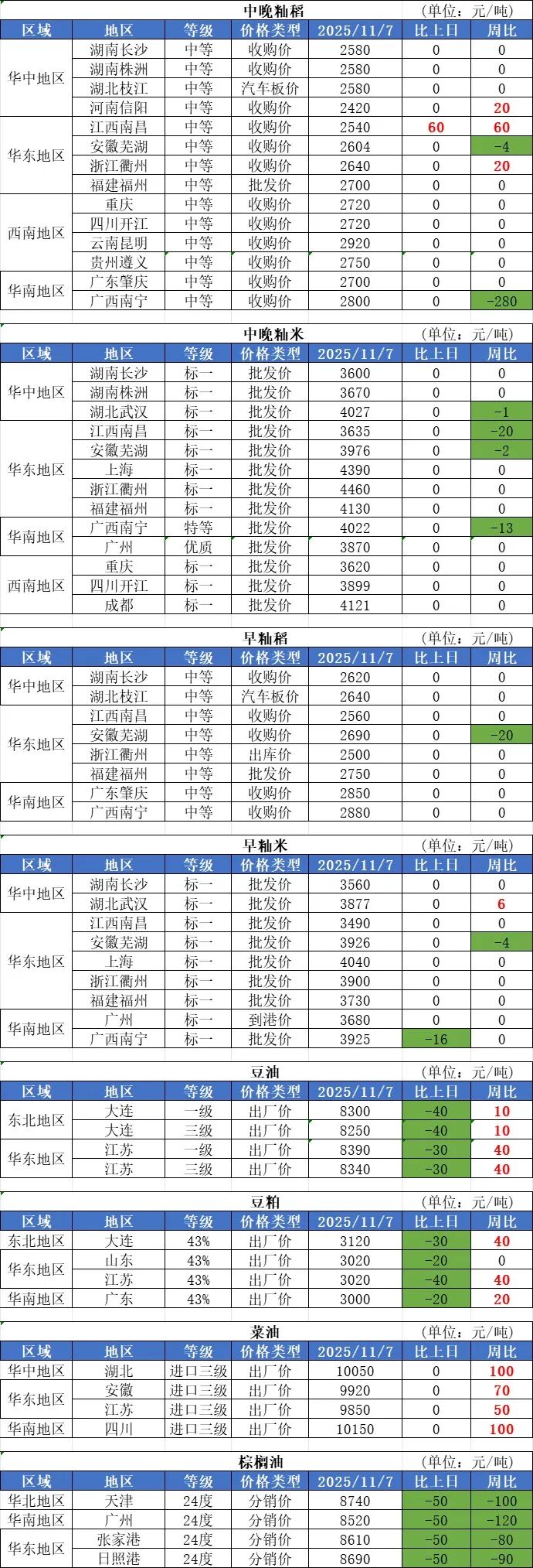 3、農(nóng)情調(diào)度顯示,截至上周,黑龍江和遼寧稻谷收獲基本完成;安徽一季稻收獲超過2900萬畝,進度過九成;四川稻谷收獲進度過九成。江西晚秈稻已收獲950萬畝,進度超五成;江蘇稻谷收獲進度約四成,同比進度快8%。吉林水稻已收獲1183萬畝,占比93%。