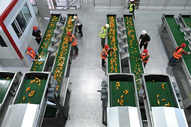 從晾曬場(chǎng)經(jīng)過晾曬的玉米果穗,直接送入全封閉加工車間。剛走進(jìn)車間,記者就被自動(dòng)化生產(chǎn)線的高效震撼:扒皮撿穗、果穗烘干、脫粒、精選、分級(jí)、包裝,全程數(shù)智化操控,每小時(shí)就能處理20噸種子。加工廠廠長(zhǎng)王鑫對(duì)記者說,今年產(chǎn)出的鄭單958種子,籽粒呈均勻的黃色半馬齒型,千粒重穩(wěn)定在350-380克,商品性遠(yuǎn)超普通種子。