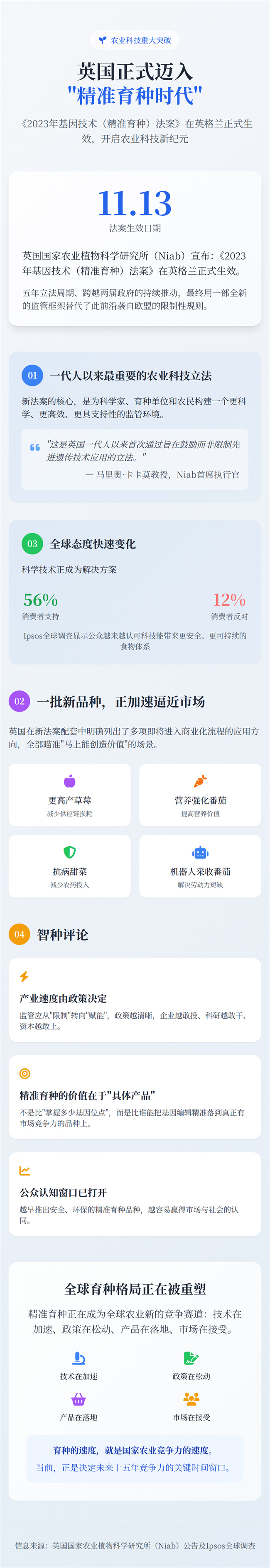 英國邁出的這一步,不只是國內(nèi)農(nóng)業(yè)科技政策的突破,更是對全球育種競爭格局的一次加速推動。而作為全球農(nóng)業(yè)大國,中國更需要讀懂這一信號。