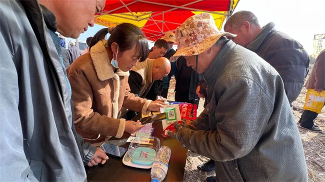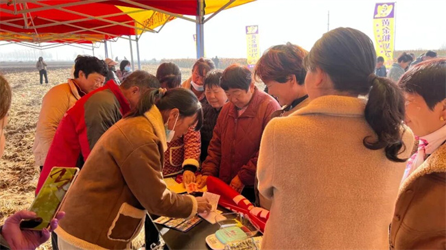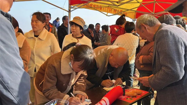 觀摩結束后,訂購現(xiàn)場氣氛同樣熱烈。種植戶主動咨詢、踴躍下單,訂購票本很快被用完。僅兩個半小時,訂購量突破6000袋。當?shù)亓闶凵掏踅浝韺衲甑耐茝V效果十分滿意。