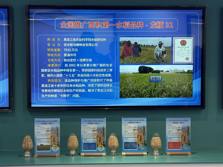 圖為黑龍江省種業(yè)創(chuàng)新成果轉(zhuǎn)化交易中心介紹展板。新華社記者 孫曉宇 攝