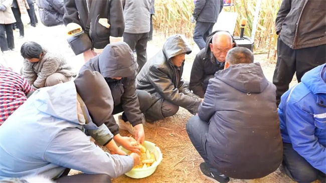 觀摩會現(xiàn)場由農戶自發(fā)組織進行了測產。最終實測結果為:干糧(折合14%水分)2227斤/畝。這一成績在今年極端氣候背景下尤為難得,再次印證了黃金糧MY73的穩(wěn)產、高產實力。