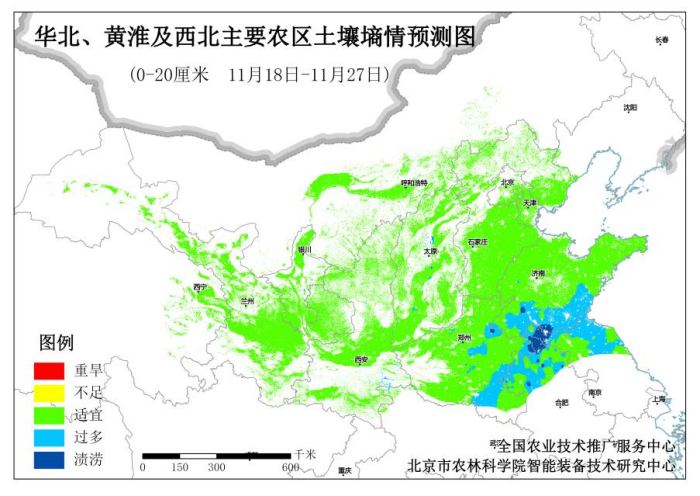 據(jù)氣象部門預(yù)測(cè),未來(lái)10天西北地區(qū)大部、山東大部有降水量0—10mm,華北、黃淮大部地區(qū)無(wú)有效降水。預(yù)計(jì)未來(lái)10天(11月18日—11月27日),墑情適宜區(qū)域占比將上升至67.31%,墑情過(guò)多區(qū)域占比下降至25.16%,漬澇區(qū)域占比可降至7.53%。漬澇區(qū)應(yīng)繼續(xù)排水降漬,創(chuàng)造適播條件。整合農(nóng)機(jī)資源,適墑機(jī)械搶播。適當(dāng)控制播種深度和增加播量,以密補(bǔ)晚。加強(qiáng)播后管理,促弱轉(zhuǎn)壯。
