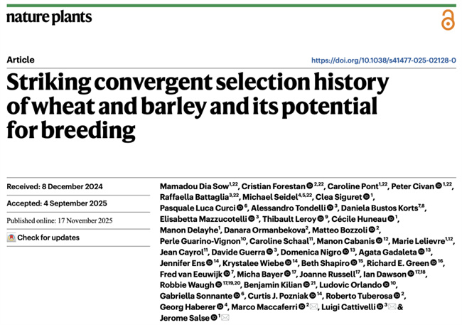 智種資訊在線:在過去的萬年里,動植物的馴化奠定了人類文明的基石。其中,大麥和小麥作為全球兩大關(guān)鍵主食作物,至今支撐著無數(shù)人口的生存與發(fā)展。2025年11月17日,《Nature Plants》發(fā)表了一項突破性研究,題為“小麥與大麥顯著的趨同選擇歷史及其育種潛力”。