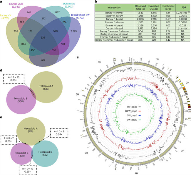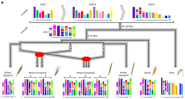 盡管它們的最終用途不同——小麥主要用于制作面包,而大麥主要用于釀造啤酒和作為動物飼料——但它們在形態(tài)上相似,基因上也密切相關(guān)。研究表明,大麥和小麥大約在800萬至1200萬年前從共同祖先分化,它們之間經(jīng)歷了一次或兩次多倍化事件,導(dǎo)致了極大的遺傳差異,走上了不同的演化道路。