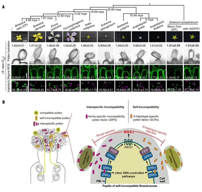 科學(xué)家們一直試圖理解為何不同物種的花粉會在柱頭面臨“身份驗證”時被識別和排斥。研究表明,SIPS作為一個“外來者”標(biāo)識,能夠與柱頭的SRK受體結(jié)合,激活防御機(jī)制,抑制遠(yuǎn)緣花粉的生長。更為重要的是,SIPS不僅僅是針對特定物種的信號,而是一個十字花科植物普遍存在的通用信號。通過這一機(jī)制,十字花科植物能夠在物種間維持穩(wěn)定的遺傳界限,防止外來基因的入侵。