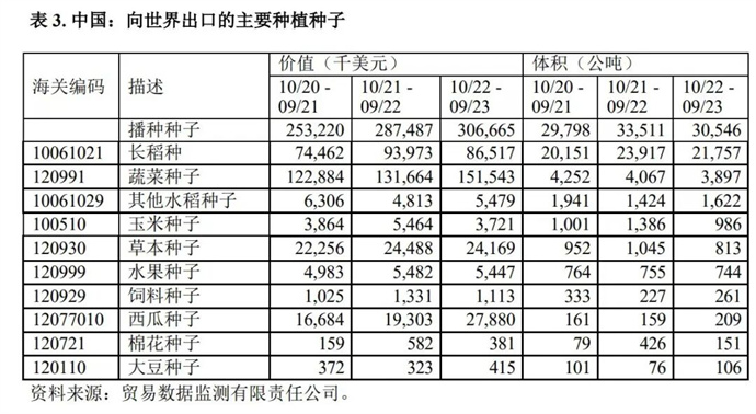 中國定位:作為全球第二大種業(yè)市場,2023年蔬菜種子出口額僅為1.5億美元。換算之下,在全球每出口100美元的蔬菜種子中,歐洲拿走了66美元,而中國僅貢獻(xiàn)不到1美元。