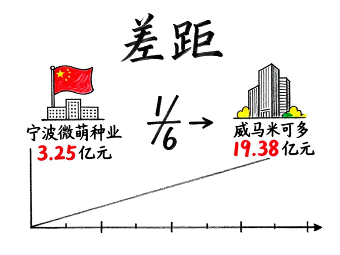 另一組數(shù)據(jù),丈量著我們的差距:國內(nèi)領(lǐng)軍企業(yè)寧波微萌種業(yè)2024年銷售額為3.25億元,這已是國內(nèi)頂峰。然而,與國際巨頭利馬格蘭旗下的威馬米可多(同期銷售額19.38億元)相比,我們的龍頭規(guī)模僅為對方的六分之一。