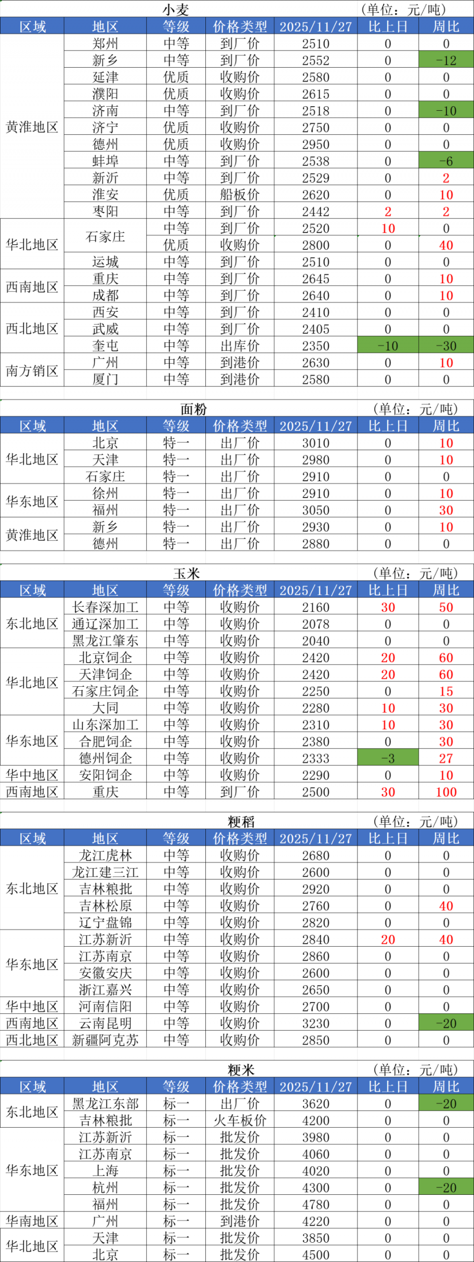 1、11月27日,小麥加工企業(yè)收購價格再次開啟上漲之路,山東、河北、河南局部企業(yè)陸續(xù)上調(diào)收購價格,幅度在2-5厘。例如禹城五得利上調(diào)5厘執(zhí)行1.252元/斤,邢臺好面緣上調(diào)5厘執(zhí)行1.26元/斤,遂平五得利上調(diào)5厘執(zhí)行1.285元/斤。