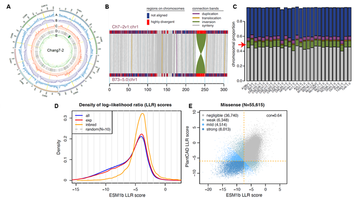 科研團(tuán)隊(duì)成功組裝了“昌7-2”的高質(zhì)量基因組,并對創(chuàng)制的1716個(gè)化學(xué)誘變株系進(jìn)行了全基因組測序,構(gòu)建了包含250萬個(gè)突變位點(diǎn)的大規(guī)模突變體庫。隨后,科研團(tuán)隊(duì)創(chuàng)新性地引入蛋白質(zhì)語言模型與DNA語言模型兩種大型AI模型,對該突變體庫中全部突變進(jìn)行功能預(yù)測,成功篩選出4個(gè)調(diào)控玉米重要農(nóng)藝性狀的關(guān)鍵基因,并驗(yàn)證了該策略的高效性與準(zhǔn)確性。此外,科研人員發(fā)現(xiàn)部分同義突變可能影響基因的轉(zhuǎn)錄水平。該研究為理解突變功能提供了新視角,為玉米功能基因挖掘與育種提供了遺傳資源和數(shù)據(jù)平臺(tái)。
