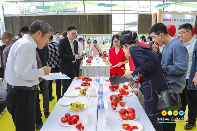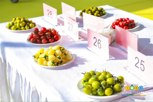 色澤繽紛的櫻桃番茄,大小不一的菜用番茄,在廣東種業(yè)博覽會(huì)綜合展館同臺(tái)競(jìng)技。