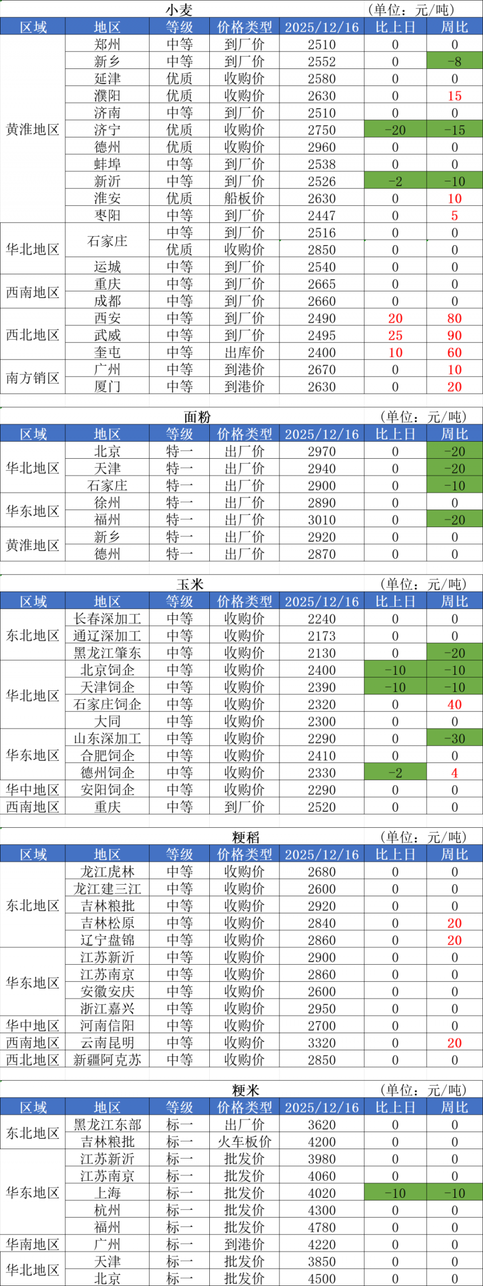 2、12月16日,我國(guó)部分地區(qū)玉米收購(gòu)價(jià)格下調(diào),其中北方港口玉米價(jià)格較昨日小幅回落,錦州港貿(mào)易商主流收購(gòu)價(jià)格2240-2250元/噸,較昨日下調(diào)20元/噸;廣東港散糧玉米2400-2420元/噸,福建漳州港二等散玉米2430-2450元/噸,均較昨日下跌10元/噸。
