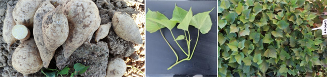 地方品種,收集于廣東省陽江市。熟食粉香甜度大、有板栗味,食味優(yōu)異,綜合評級食味得分88分,高于對照品種。此外,干粉淀粉含量為577.52g/kg(其中直鏈淀粉101.19g/kg)、可溶性糖106.13g/kg、還原性糖8.91g/kg、粗蛋白33.12g/kg、總黃酮4.68g/kg、總酚2.99g/kg。表型精準(zhǔn)鑒定結(jié)果表明:結(jié)中薯數(shù)量多且整齊,穩(wěn)產(chǎn)性好,產(chǎn)量高(高于對照品種20.0%)。可應(yīng)用于鮮食甘薯品種的遺傳改良。
