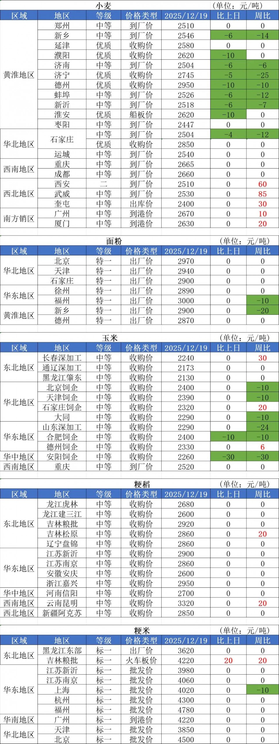 1、12月19日,小麥加工企業(yè)收購(gòu)價(jià)格跌勢(shì)繼續(xù)擴(kuò)大,主要因近期小麥?zhǔn)袌?chǎng)上量迅速增加,面粉消費(fèi)對(duì)麥價(jià)支撐不足,五得利、金沙河等國(guó)內(nèi)制粉企業(yè)紛紛下調(diào)價(jià)格,跌幅在2-3厘。
