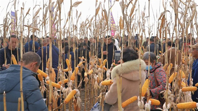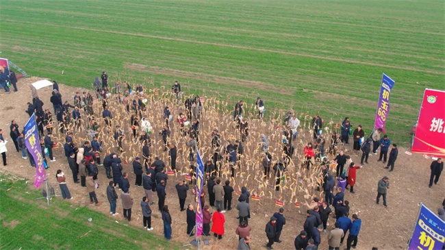 12月20日,河南億佳和農(nóng)業(yè)科技有限公司“機(jī)玉665挑戰(zhàn)站稈200天——夏邑站”活動成功舉行。來自河南、安徽、江蘇等地近500位經(jīng)銷商到場觀摩見證。在寒冬條件下,機(jī)玉665現(xiàn)場實(shí)收測產(chǎn):平均畝產(chǎn)1680斤(籽粒水分13%,密度4500株/畝)。在這個小麥已經(jīng)綠油油的冬季,機(jī)玉665仍能直立于田,充分展現(xiàn)出其超常的莖稈耐久性與綜合抗逆能力。