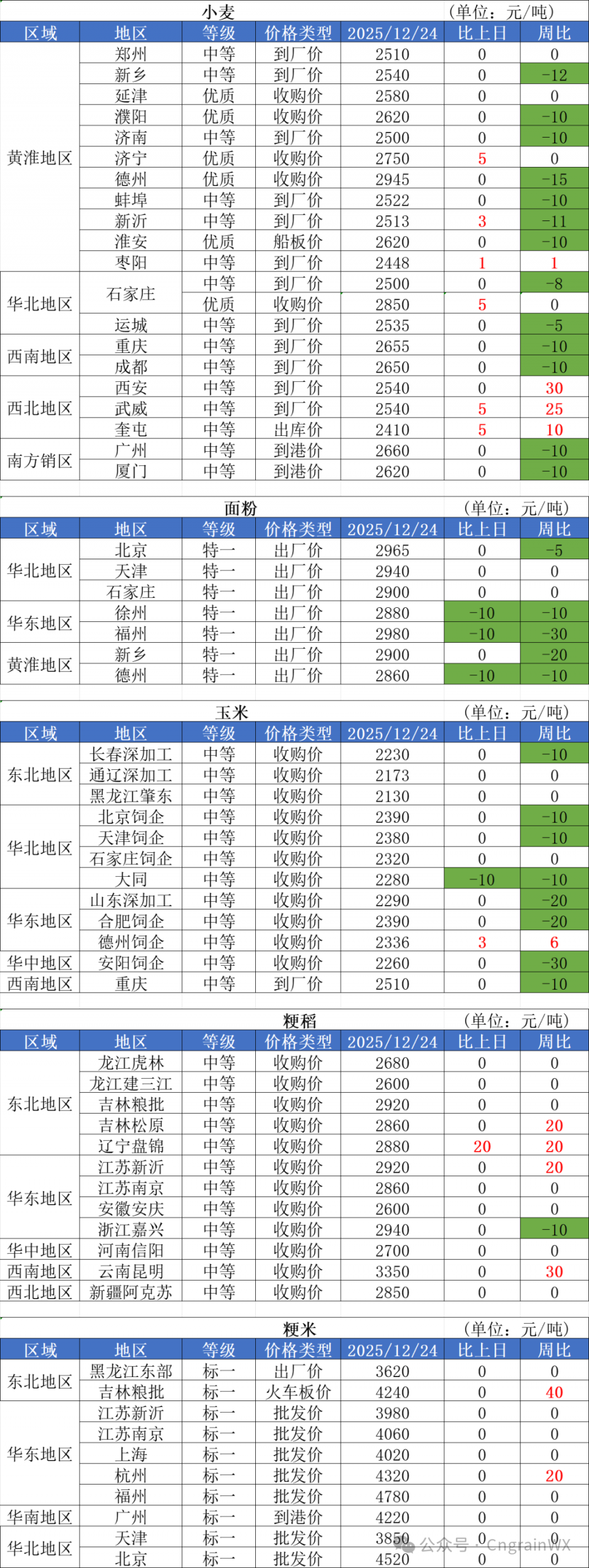 1、12月24日,小麥加工企業(yè)收購價格局部上漲,漲價區(qū)域集中于山東、河北、河南等主產(chǎn)區(qū),漲幅3-5厘。目前小麥市場整體流通量偏低,市場觀望情緒濃厚,短期仍處于行情修復(fù)的過程中。