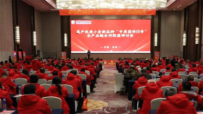 2025年12月31日,高產(chǎn)優(yōu)質(zhì)強筋小麥新品種“中原國科15號”全產(chǎn)業(yè)鏈合作聯(lián)盟研討會在安徽阜陽召開。來自政府部門、育種企業(yè)、加工企業(yè)、糧貿(mào)機構(gòu)、經(jīng)銷商、種植大戶及行業(yè)媒體的代表齊聚一堂,圍繞品種推廣、產(chǎn)業(yè)協(xié)同與模式創(chuàng)新展開深入交流,共同探討小麥產(chǎn)業(yè)高質(zhì)量發(fā)展的現(xiàn)實路徑。