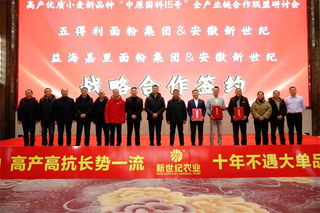 研討會上,小麥產(chǎn)業(yè)鏈上下游合作取得實質(zhì)性進展。安徽新世紀種業(yè)科技有限公司分別與五得利面粉集團、益海嘉里面粉集團等大型加工企業(yè)達成戰(zhàn)略合作,并與安徽海芳糧貿(mào)、河南金麥糧油等糧貿(mào)企業(yè)簽署產(chǎn)業(yè)聯(lián)盟合作協(xié)議,進一步打通“良種—種植—加工—流通”關鍵環(huán)節(jié)。