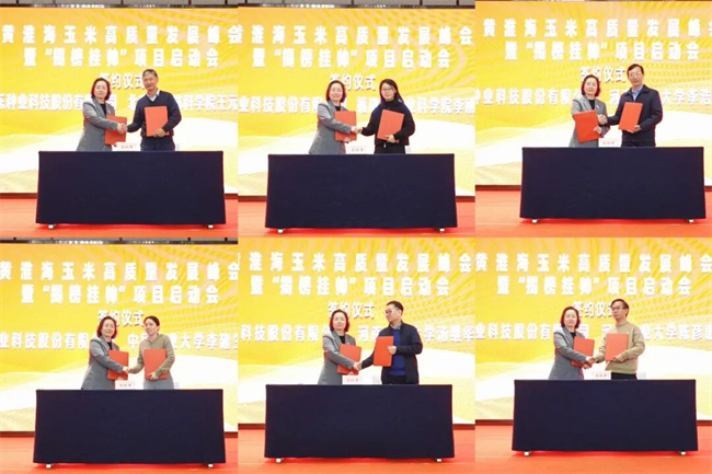 會議現(xiàn)場,秋樂種業(yè)分別與河南農(nóng)業(yè)大學湯繼華教授、李浩川教授、陳彥惠教授科研團隊,中國農(nóng)業(yè)大學李建生教授科研團隊,北京市農(nóng)林科學院王元東研究員科研團隊,福建省農(nóng)業(yè)科學院李剛研究員科研團隊等單位簽署聯(lián)合攻關(guān)協(xié)議,正式構(gòu)建以企業(yè)為主體、多方優(yōu)勢力量協(xié)同推進的創(chuàng)新聯(lián)合體,標志著“揭榜掛帥”項目全面進入實施階段。