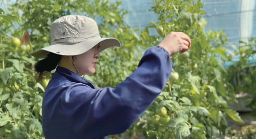 “90后”育種家田間觀察番茄性狀。 資料圖
