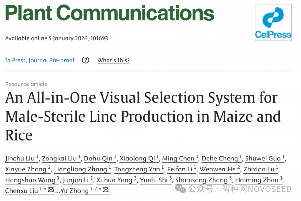 2026年1月5日,中國農(nóng)業(yè)大學(xué)陳紹江教授團隊在Plant Communications上發(fā)表題為“An All-in-One Visual Selection System for Male-Sterile Line Production in Maize and Rice”的研究論文。
