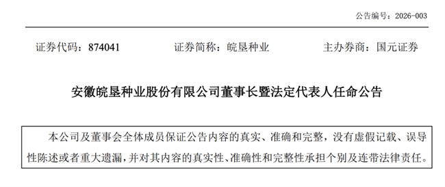 1月9日,安徽皖墾種業(yè)股份有限公司發(fā)布董事長(zhǎng)暨法定代表人任命公告。據(jù)公告,皖墾種業(yè)原董事長(zhǎng)徐世園因工作變動(dòng)辭任董事長(zhǎng)職務(wù),為確保公司工作的順利展開(kāi),根據(jù)《公司法》和《公司章程》的有關(guān)規(guī)定,現(xiàn)選舉盧子浩擔(dān)任公司第五屆董事會(huì)董事長(zhǎng)。