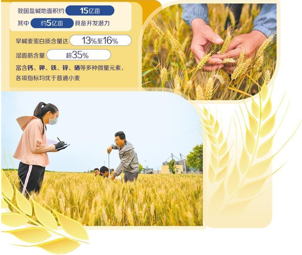 我國高度重視鹽堿地綜合改造利用。2022年起,國家小麥產(chǎn)業(yè)技術(shù)體系科學(xué)家啟動系統(tǒng)研究,圍繞鹽堿地改良、旱堿麥育種及特色發(fā)掘等關(guān)鍵領(lǐng)域持續(xù)攻關(guān),成功選育出多個適配鹽堿地生長的優(yōu)良品種,同步提升了旱堿麥的產(chǎn)量與風(fēng)味口感,為其規(guī)?;茝V應(yīng)用筑牢基礎(chǔ)。