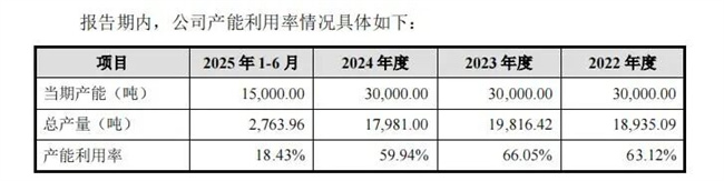 然而,公司目前的產(chǎn)能利用率并不高。2024年,其3萬(wàn)噸年產(chǎn)能的利用率僅為59.94%。在現(xiàn)有產(chǎn)能尚未跑滿、行業(yè)整體處于產(chǎn)能過(guò)剩預(yù)警期的當(dāng)下,繼續(xù)大規(guī)模擴(kuò)產(chǎn)的邏輯何在?