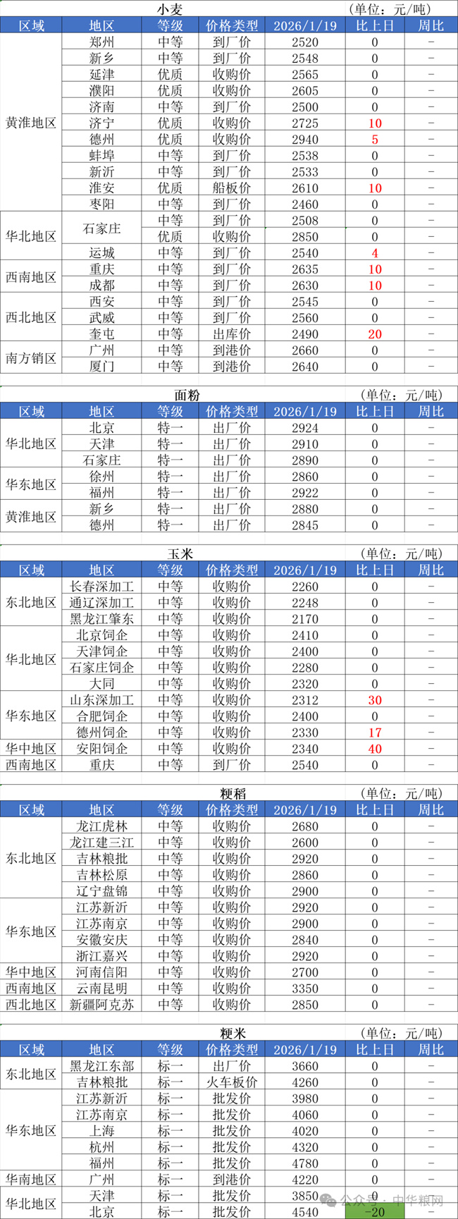 1、1月19日,小麥加工企業(yè)收購價格整體持穩(wěn),局部小幅提價。中央氣象臺顯示,1月17日至21日,寒潮過程將影響我國,中東部地區(qū)將出現(xiàn)入冬以來最強雨雪冰凍天氣過程。本次雨雪范圍大,或將影響小麥購銷上量、提振小麥行情。