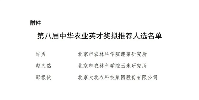 北京市農(nóng)業(yè)農(nóng)村局關(guān)于第八屆中華農(nóng)業(yè)英才獎(jiǎng)擬推薦人選的公示