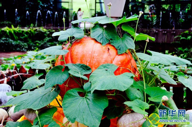 當(dāng)日,深圳東部華僑城茶溪谷培植的太空巨型南瓜吸引了眾多游客。據(jù)介紹,太空船把南瓜種子帶上太空,這些種子在宇宙里經(jīng)過綜合射線的作用,回到地面后,科研人員利用溫室效應(yīng),經(jīng)過三個月的種植,長出150公斤的大南瓜,在生長繁殖期高峰時,南瓜每天能增重5公斤。新華社發(fā) 高殿華攝
