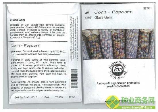 在該組織網(wǎng)頁(yè)上,一袋種子賣7.95美元,袋子背面附有種植指導(dǎo)。